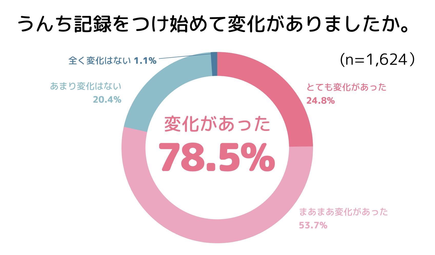 ▼うんち記録をはじめて、約80%の人が変化を実感している