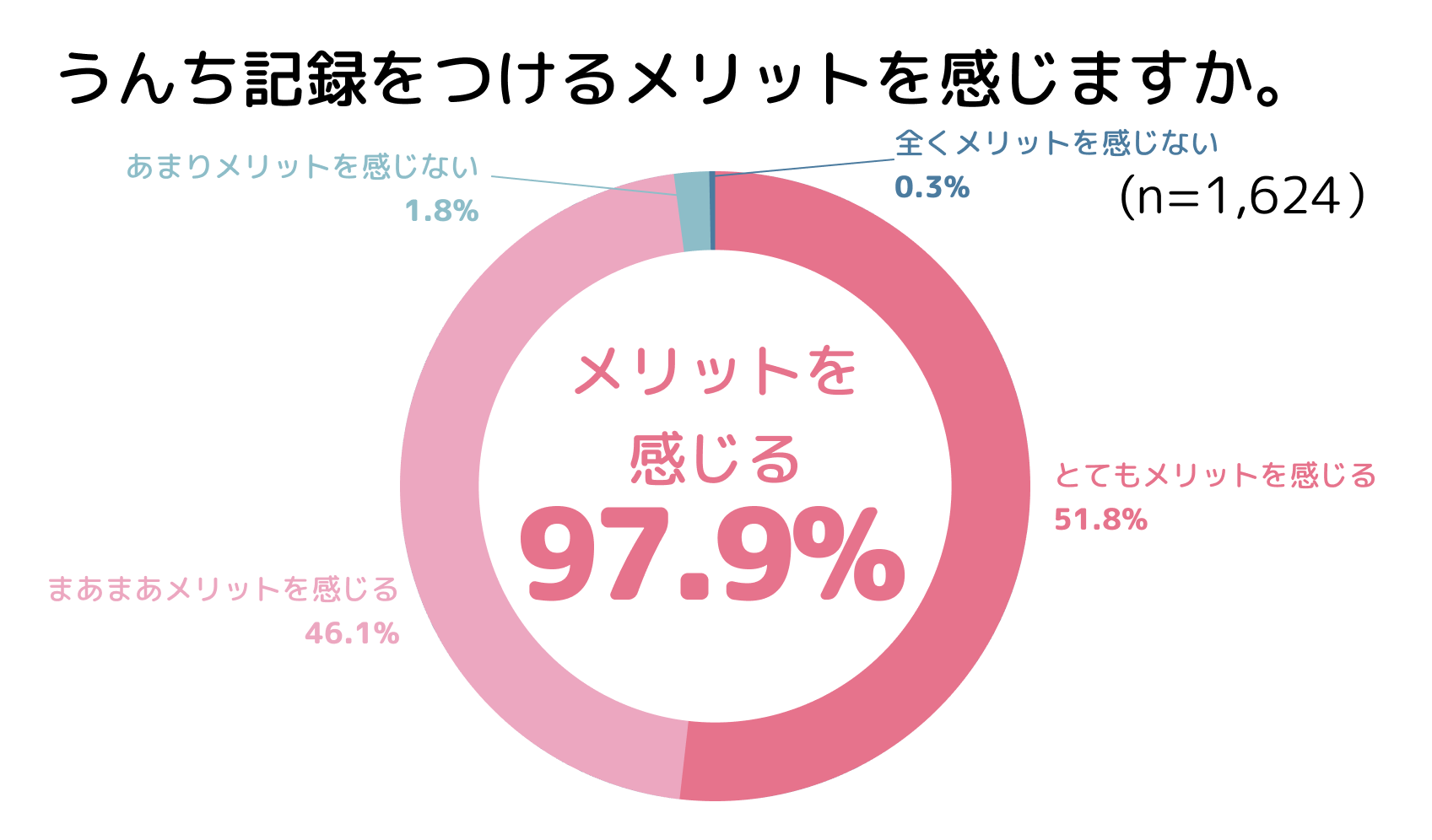 ▼約98%の人が、うんちを記録することにメリットを感じている