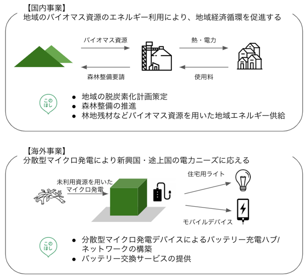 このほしでは、国内外での社会課題解決のための事業を展開予定です。この度の資金調達により、バイオマスによるマイクロ発電デバイスを開発するとともに、新興国市場での事業可能性の検証を行います。そして、今後の事業拡大を見据えた人材獲得に取り組み、国内外における地域資源エネルギー事業の展開基盤を構築します。