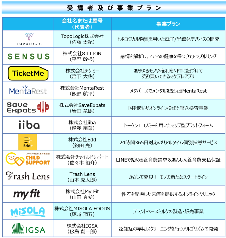プログラムへの応募数は順調に増加しており、このたび12社が決定。これから約166名のメンター陣とともに、事業の成長を目指します。