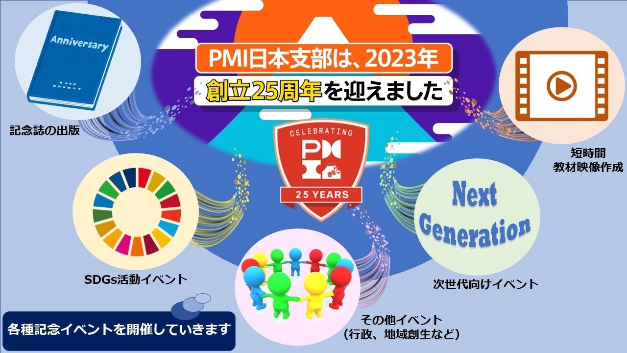 プロジェクトマネジメントの啓発普及団体である一般社団法人PMI日本支部(所在地︓東京都中央区、会長︓端山 毅)は、2023年1月16日に創立25周年を迎えました。さらなる発展を目指し、プロジェクトマネジメントの価値を広める記念事業を実施いたします。