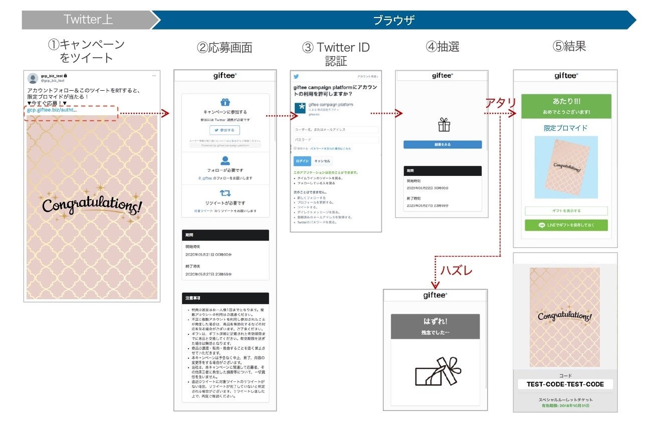 リアルタイムに当落結果を表示し、当選者には即時シリアルコードをプレゼントする抽選施策も実施可能です。お客様の期待感を高めることで満足度を向上できるだけでなく、プリントするモチベーションを上げることで引換率(印刷率)を向上させる効果も期待できます。