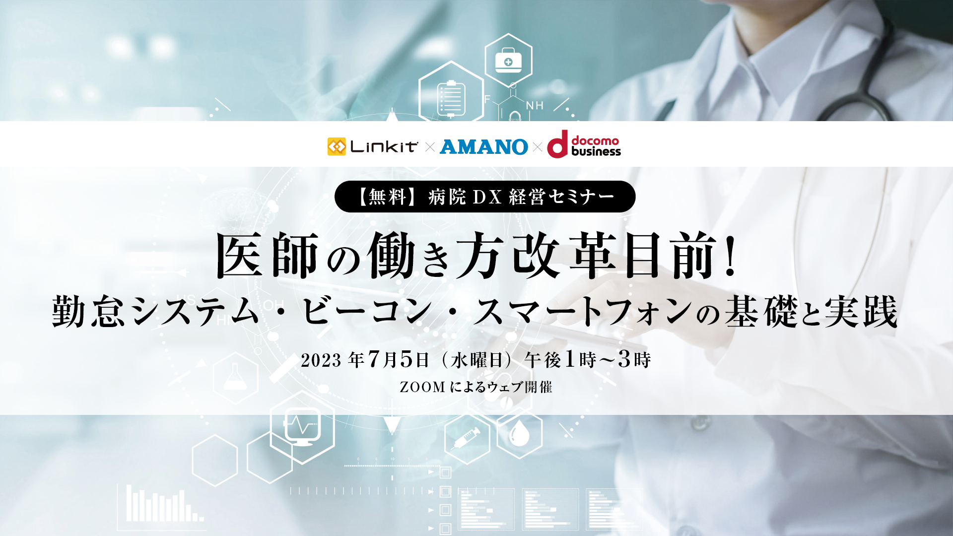 ACCESSは、デスクレスワーカー(現場で活躍するビジネスパーソン)のためのサービス群、「Linkit®」シリーズを提供しています。この度、医療機関向けに必要なDXサービスをご紹介する「Linkit® メディカル」サイトをオープンいたしました。これを記念して、無料セミナーを開催いたします。