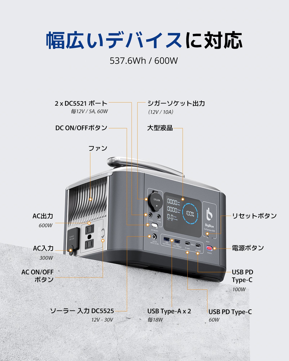 AC出力600W(瞬間最大1,200W) |