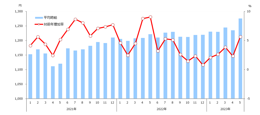 1.職種別平均時給(2023年5月)