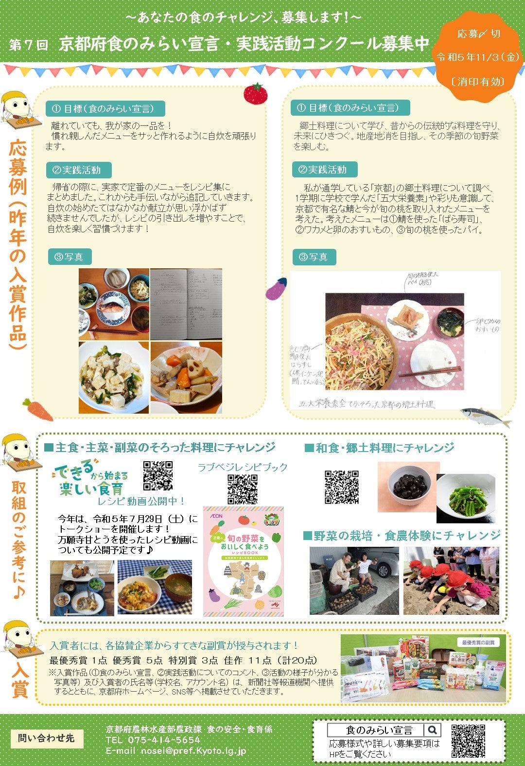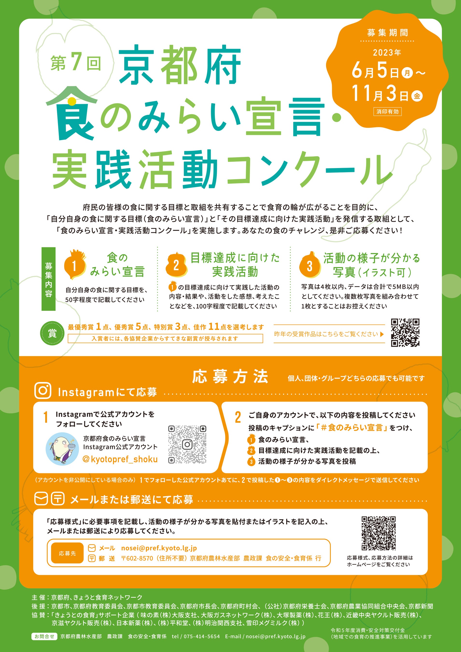 「あなたの食のチャレンジ、募集します!~『第7回京都府食のみらい宣言・実践活動コンクール』を実施~」