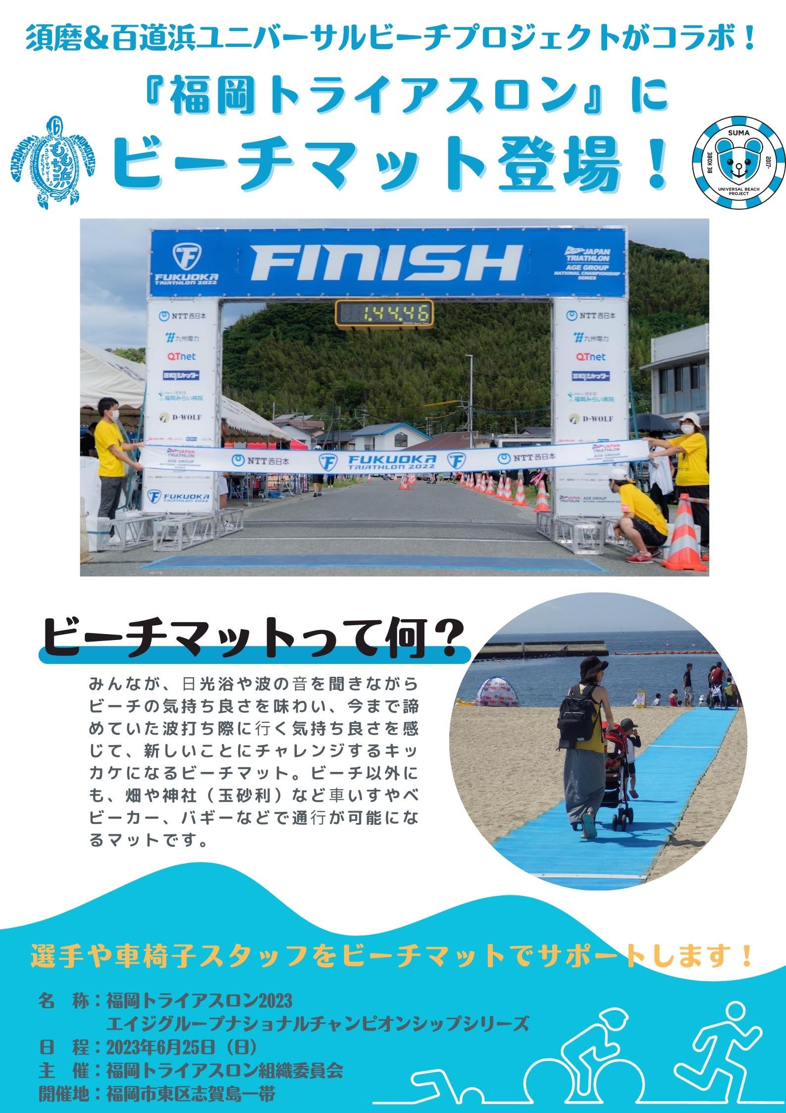 福岡トライアスロンにて、トライアスロン大会初ビーチマットを設置