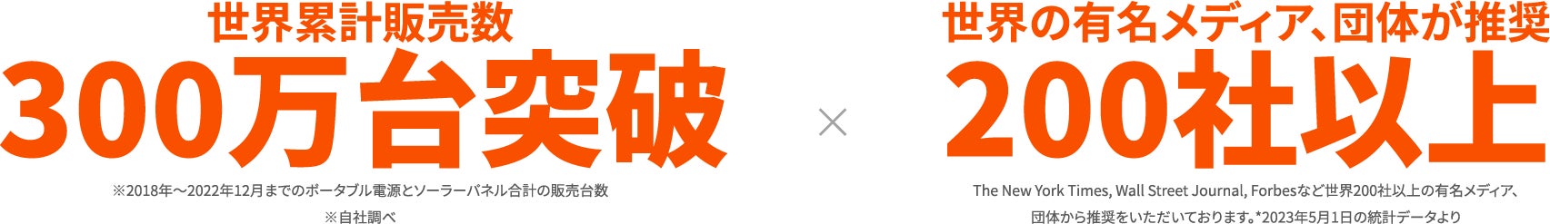 ※2018年~2022年12月までのポータブル電源とソーラーパネルの世界合計販売台数。自社調べ。
