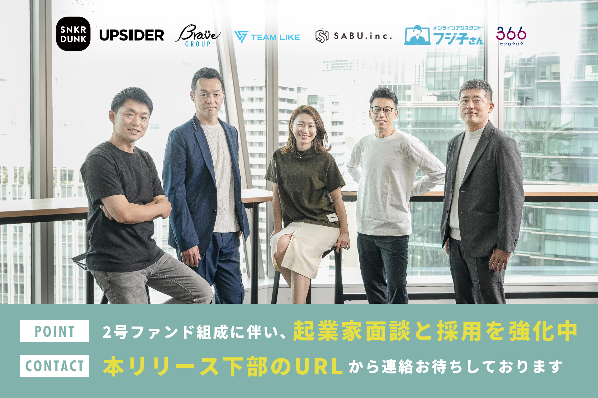 今回の2号ファンドはさらに多くの起業家を成功させるべくシード〜シリーズBまでの継続投資を視野に入れ、成長資金の提供のみに留まることなく、あらゆる支援を起業家へ提供します。
