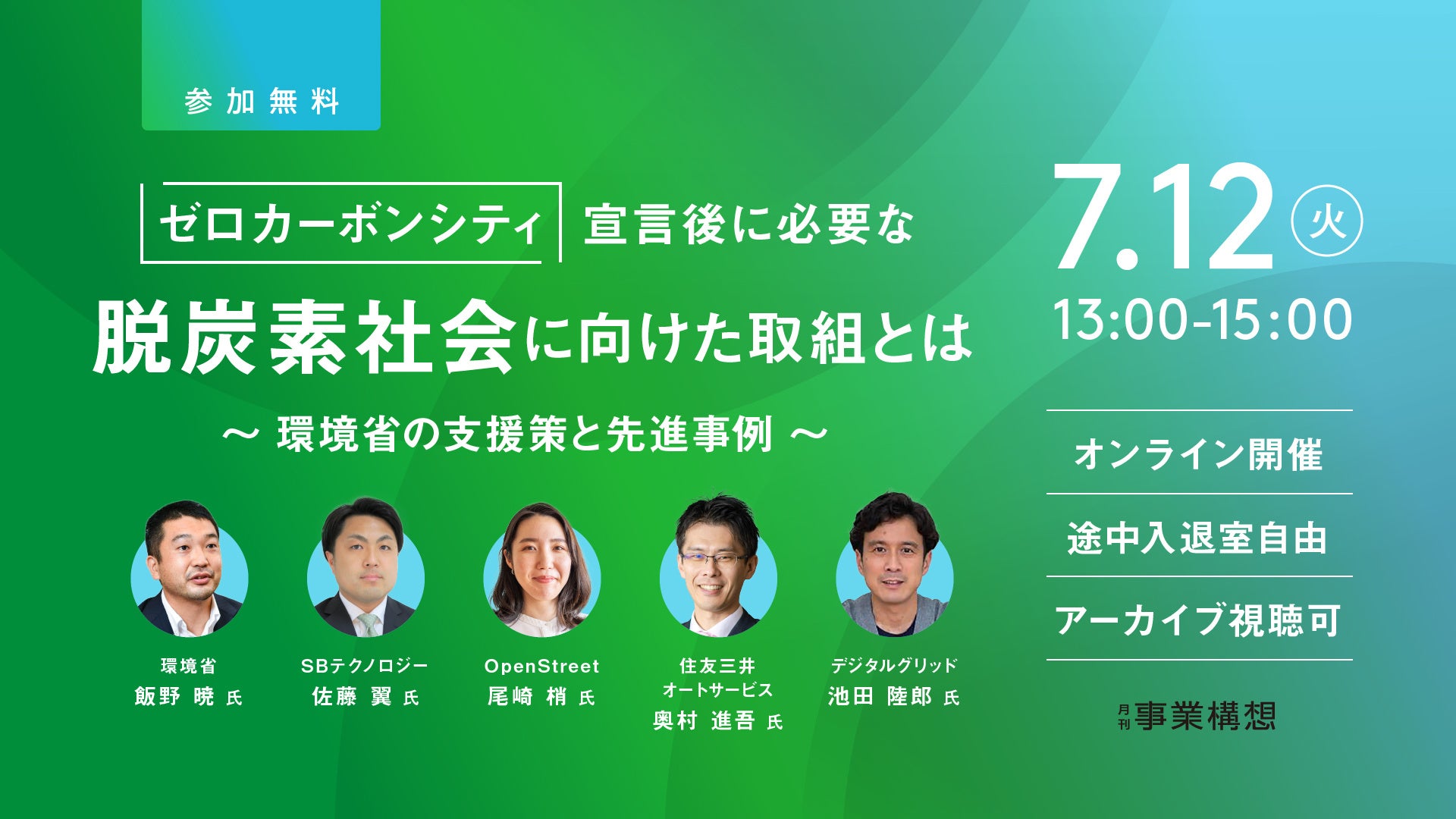 対象 :自治体、首長、企画課、環境課、まちづくり課、施設課、民間企業 など