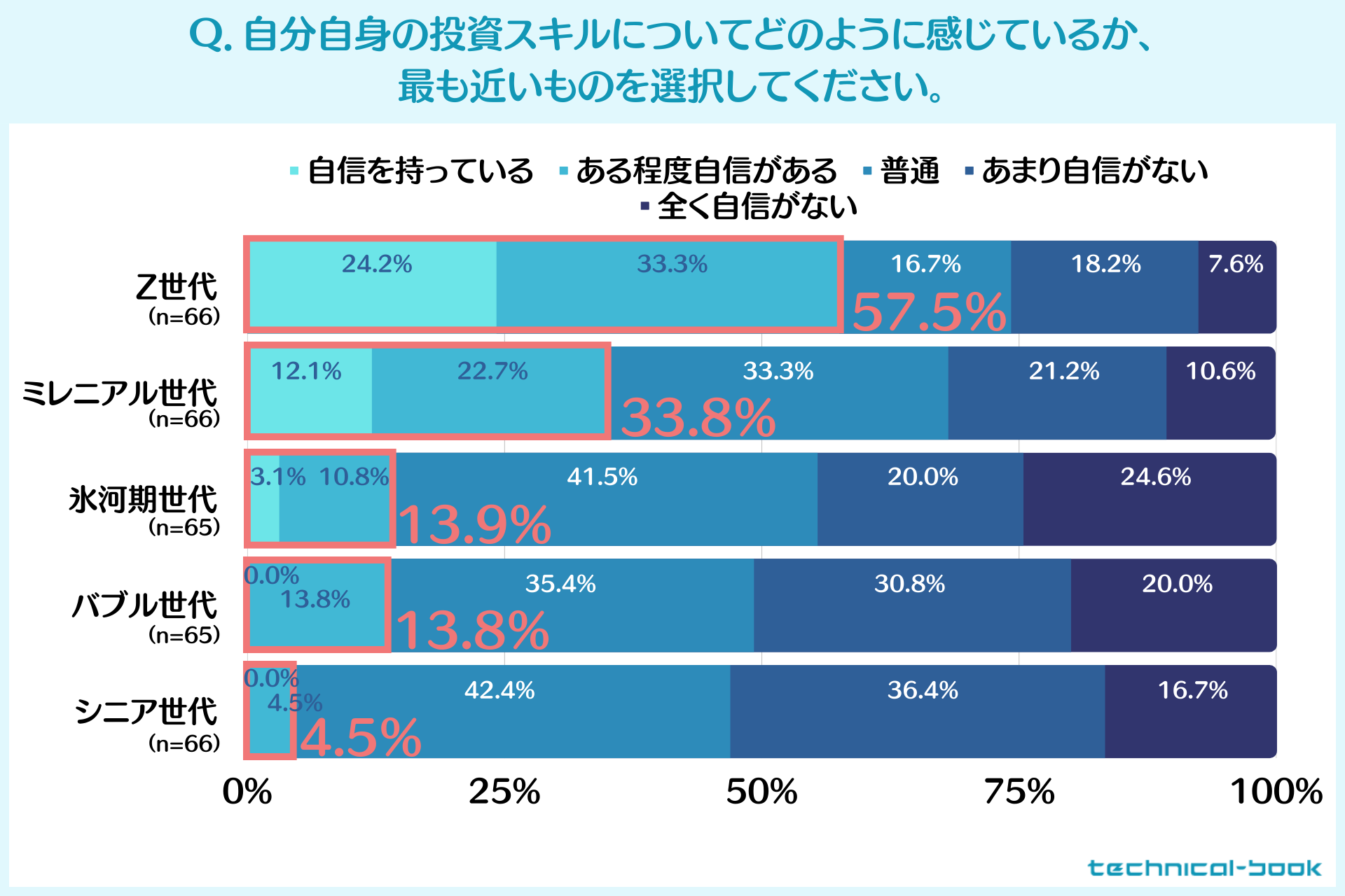 Z世代投資家の57.5%(シニア世代投資家の10倍以上)が自分の投資スキルに自信あり