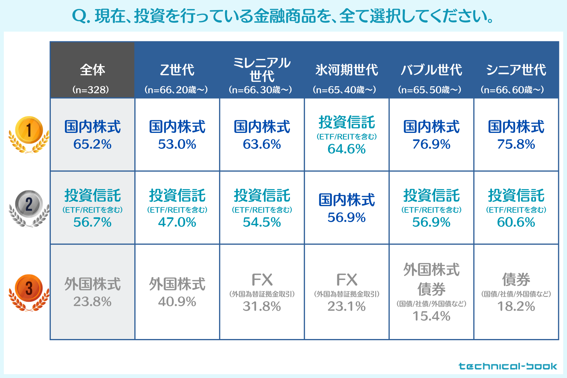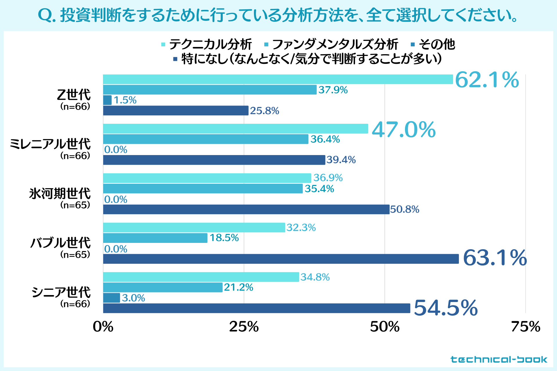 若い世代はテクニカル分析を重視、世代が上がるほど感覚的な投資が多くなる
