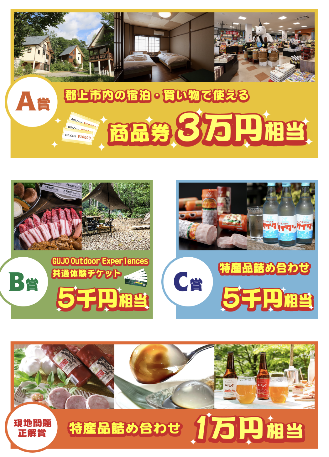 【現地問題賞】:郡上市特産品詰め合わせ¥10,000円相当(当選者1名)