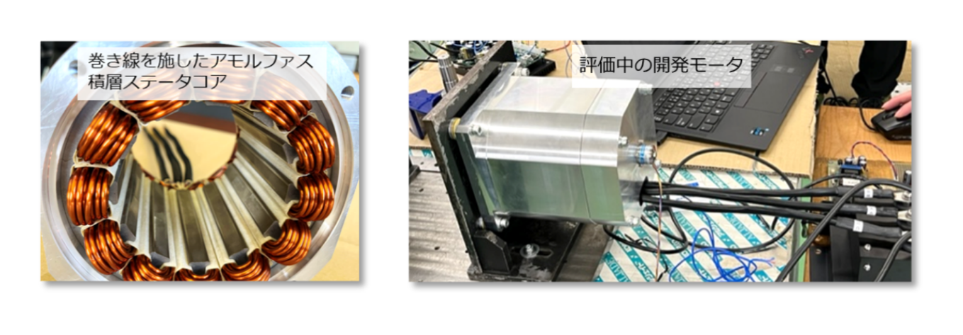 アモルファス積層コアの性能を実証することを目的に、小型EV等にも搭載可能な出力5kWクラスのアモルファス積層コアを採用した世界最高レベルのモータ効率が得られるブラシレスDCモータを開発しました。