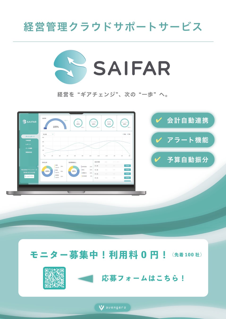 会計システムとAPI連携したSaaSプロダクトを開発する「SAIFAR」を展開する2022年設立のベンチャー企業です。中小企業の予算管理と成長支援をおこなうことで、経営者の未来を見据えた経営を支え、新産業創出にチャレンジしやすい社会を実現し、 日本の経済成長に大きく寄与することを目指します。