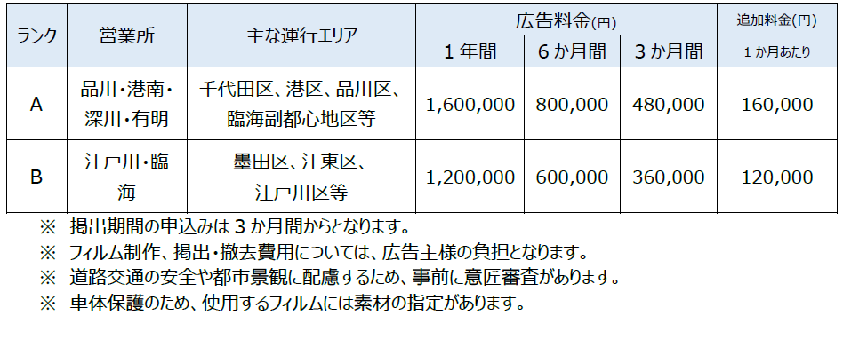 ※抽選後、広告が埋まらなかった車両については、随時申込みを受け付けます。