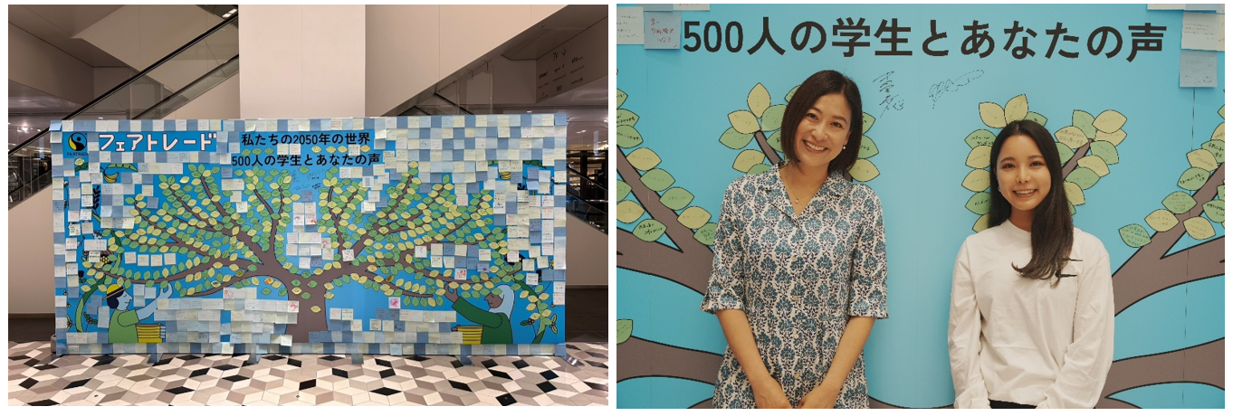 渋谷スクランブルスクエアではフェアトレード大学である青山学院大学との産学連携プロジェクトとして、企画・運営に青山学院大学総合文化政策学部のフェアトレード・ラボの学生が入りました。また、世界フェアトレード・デーにはキャンペーンアンバサダーである髙梨沙羅さん、末吉里花さんにお越しいただきトークイベントを開催しました。(協力:株式会社Innovation Design)