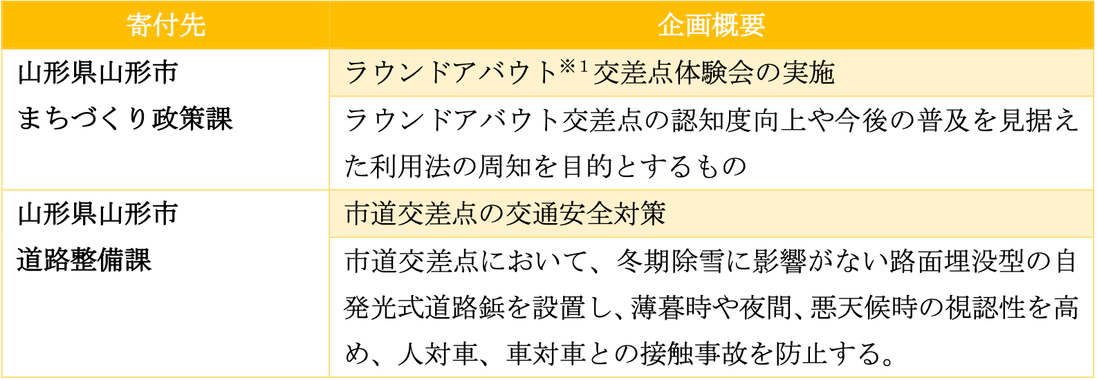 「+まち」では、「&e」のお客さまの事故率を、安全運転意識の高まりをはかる指標として設定しています。あらかじめ設定した事故率を年間目標とし、年間目標を下回った場合に寄付金の上乗せを行います。2022年度は目標事故率を7.0%と設定していたところ、事故率が3.9%と下回ったため、2企画、計200万円を寄付することとなりました。