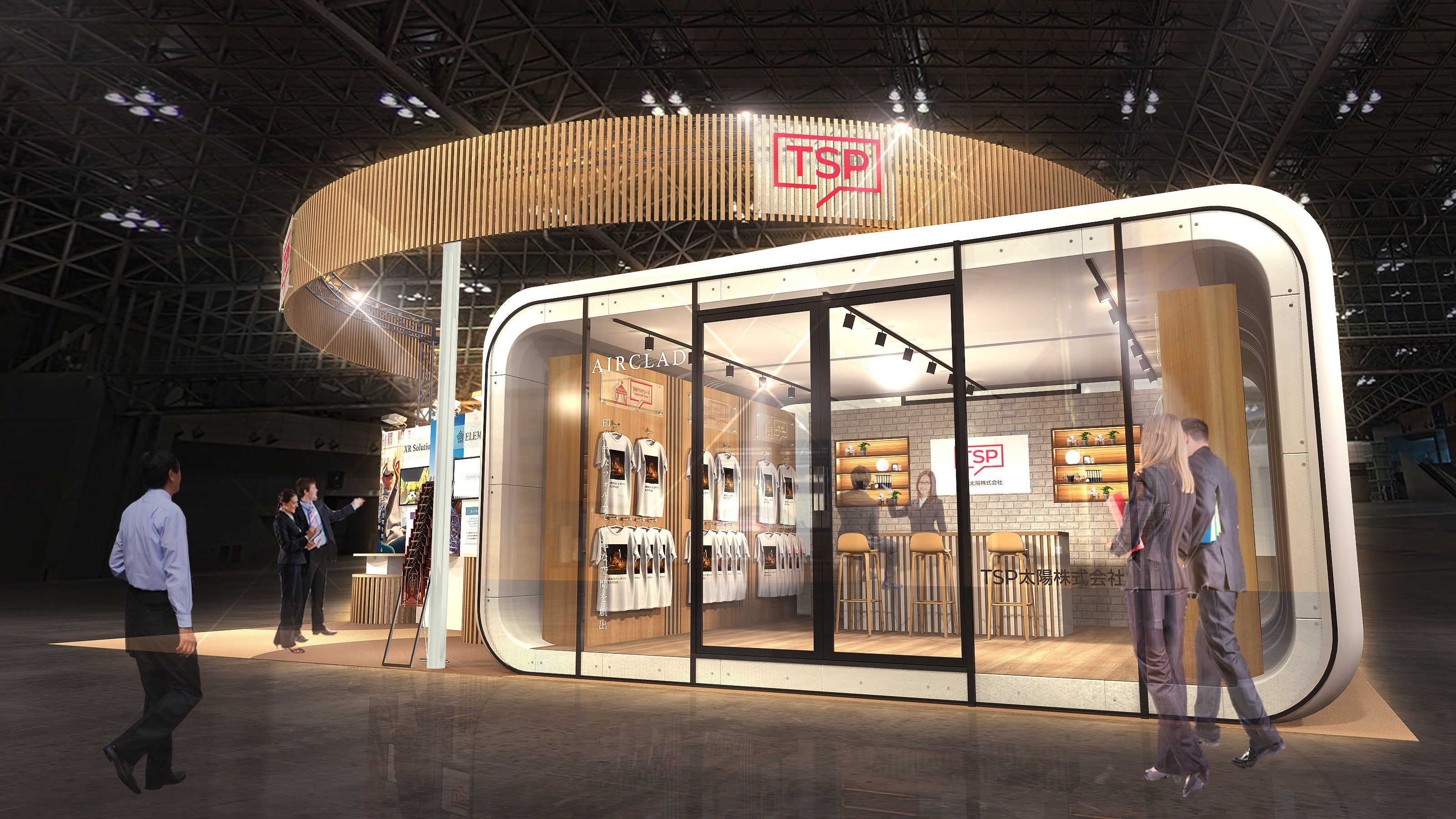 独特なフォルムが目を引くテント「AIRCLAD(エアークラッド)」。施工性に優れるだけでなく、カスタマイズも自由自在。デザイン性が高く、アイキャッチとしてもご活用いただけます。今回はブース内に実際の「AIRCLAD」を展示。実物を見ながら使用イメージを体感いただけます。