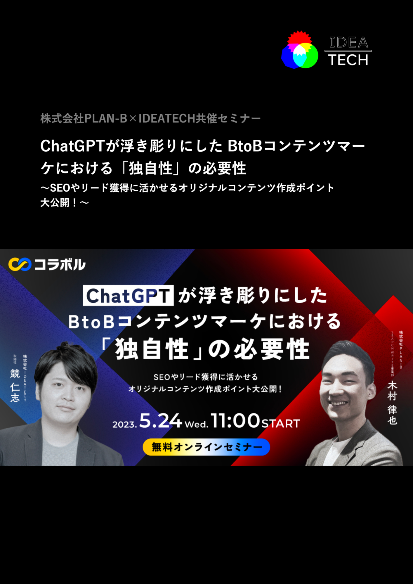 ChatGPTが浮き彫りにした BtoBコンテンツマーケにおける「独自性」の必要性についての全容レポートはこちらからご覧いただけます:https://ideatech.jp/download/079/?utm_source=pr_230616