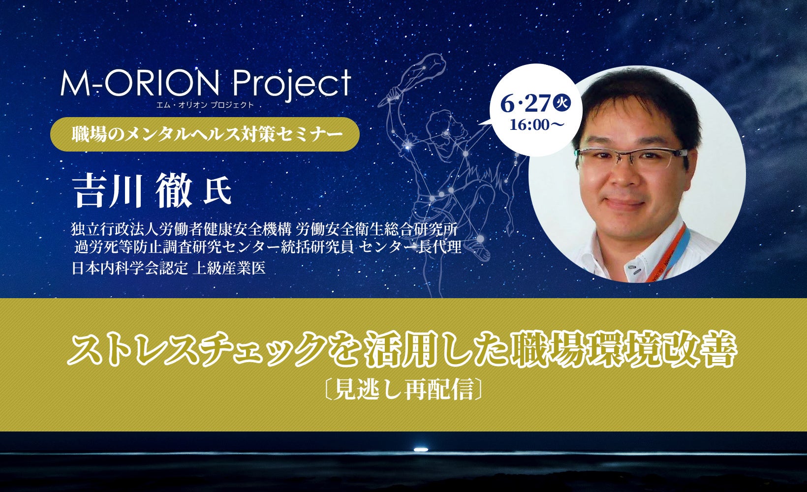 今回は、ストレスチェック制度を活用した職場環境改善に関する多くの知見・実績をお持ちの吉川氏に、実際の職場でありがちな課題と具体的な対策事例などを交えてお話しいただきますので、皆さまの職場にとっても改善のヒントが見つかるのではないでしょうか。
