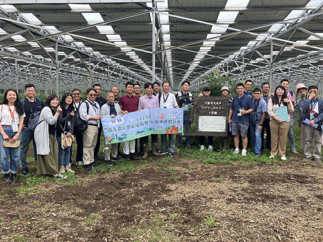 千葉エコ・エネルギー株式会社(本社:千葉県千葉市、代表取締役:馬上丈司)は2023年6月14(水)、台湾財団法人中衛発展センター(代表取締役:謝 明達)及び台湾の若手農家15名の現地視察の受け入れをさせていただきました。当日は自社の圃場である営農型太陽光発電設備「千葉市大木戸アグリ・エナジー1号機」(千葉市緑区)にて、設備見学会を実施し、営農型太陽光発電における太陽光パネル下の農作物の生育状況や気候変動における再生可能エネルギーの利用価値や可能性について幅広く意見交換をしました。今回の視察の中で、台湾の課題として関心が強かった分野は「台風にも十分に耐えられる設計」、「日本よりも強い日射を抑えて農作物が作る技術」であり、弊社の経験や知見を元に情報を提供させていただきました。
