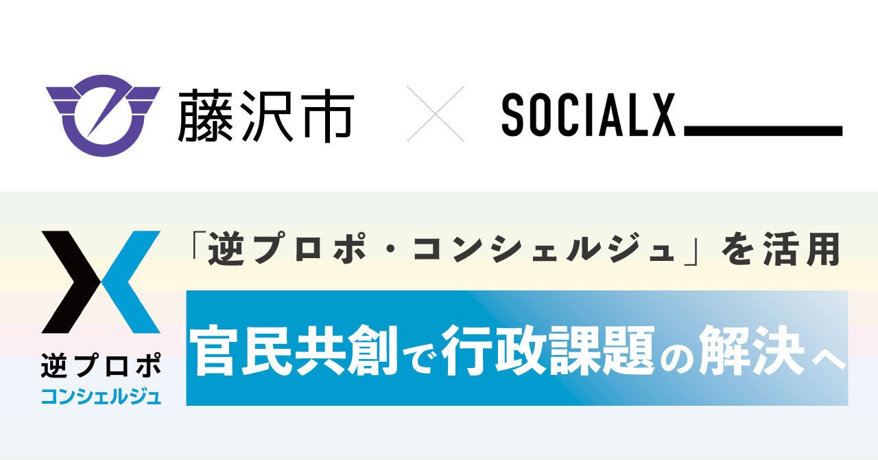 株式会社ソーシャル・エックス(東京都渋谷区、以下、当社)は、このたび、神奈川県藤沢市が行政課題を「官民共創」によって解決していくにあたり、「逆プロポ・コンシェルジュ」サービスを通してサポートすることとなりましたのでお知らせします。