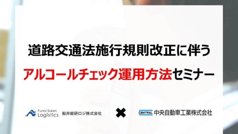 ロジスティクス・物流コンサルティングサービスを提供する船井総研ロジ株式会社(以下「船井総研ロジ」)のコンサルタント講演情報です。中央自動車工業株式会社が主催するアルコール検知器の選定方法やチェック体制について解説するセミナー「道路交通法施行規則改正に伴うアルコールチェック運用方法セミナー」にて、船井総研ロジのコンサルタントが「AIドライブレコーダーを活用した安全指導・事故防止方法」について解説します。