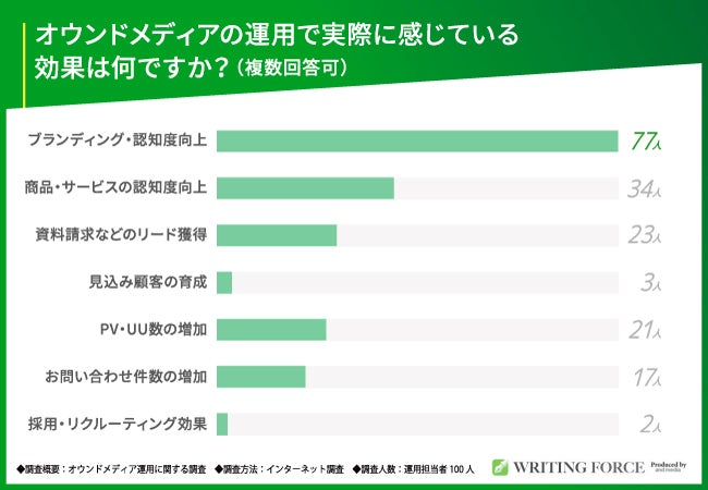 オウンドメディアの運用で最も感じている効果は「ブランディング・認知度向上」