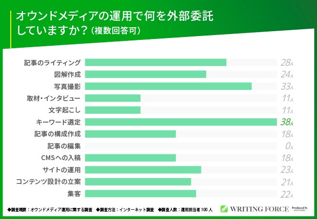 また、記事のライティングや図解作成など、コンテンツ制作周辺の業務も委託される企業が多いことが分かります。