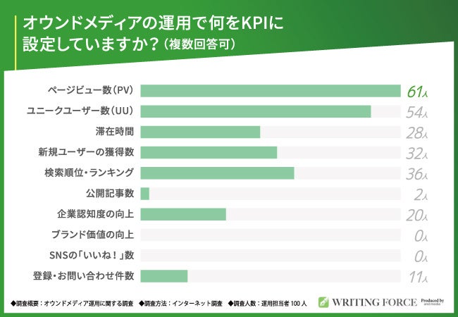 また、ページビュー数やユニークユーザー数にも影響する、検索順位やランキングをKPIとする企業も多かったです。