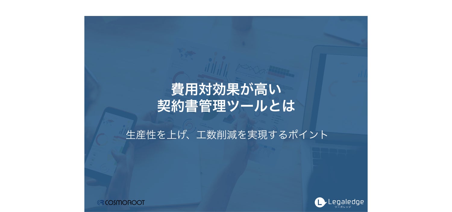 契約業務一連の流れをDX化するクラウドサービス「リーガレッジ」を提供する、株式会社コスモルート(本社:東京都千代田区 代表取締役社長:島本 鉄弥)は、「費用対効果が高い契約書管理ツールとは」を公開いたしました。