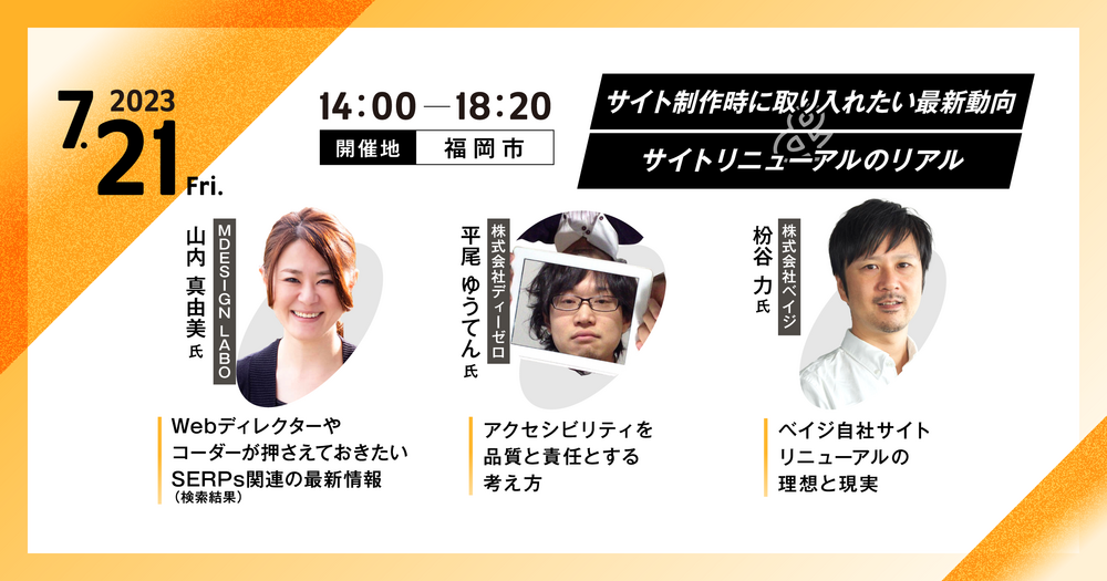 ホームページ制作のリアルな現場情報をお届けするセミナーを博多で開催いたします。オンライン開催はありません。ウェブ関連のお仕事をしているみなさまの交流と情報交換の場になれば幸いです。