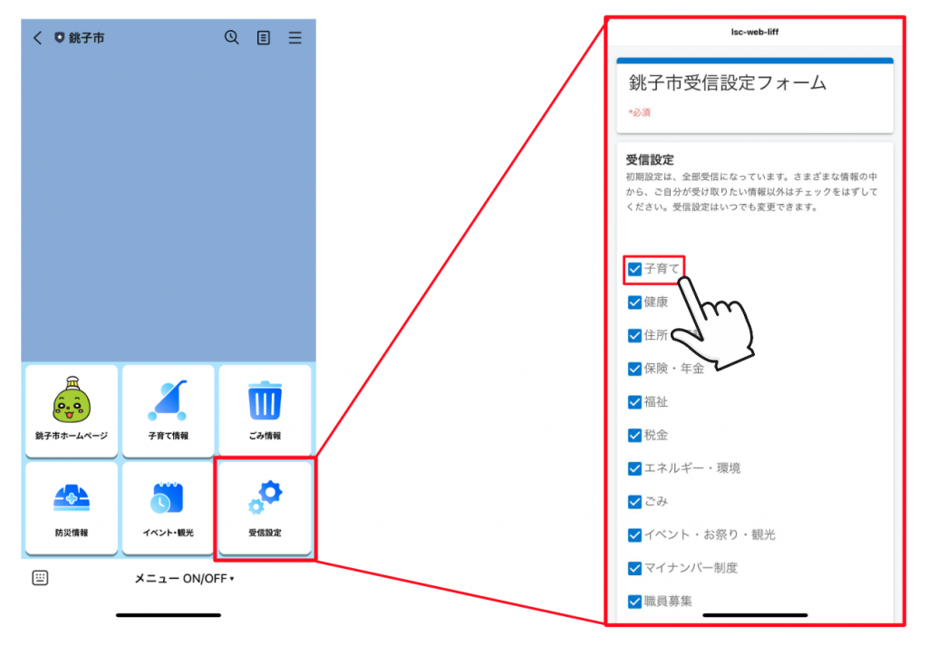 今回のリニューアルで最も注目すべきは「セグメント配信機能」の追加です。「銚子市受信設定フォーム」に受け取りたい配信カテゴリーを登録しておくと、設定したカテゴリーだけを受信できる機能です。