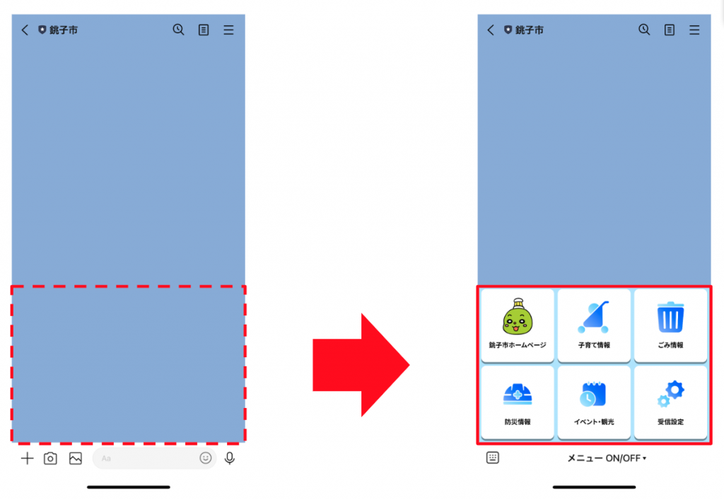 今回のリニューアルでは新たにリッチメニューを設置。これまではホームページからでしか見れなかった「子育て」「ごみ」「防災」などの情報を、LINEのチャット画面から容易に取得できるようになりました。