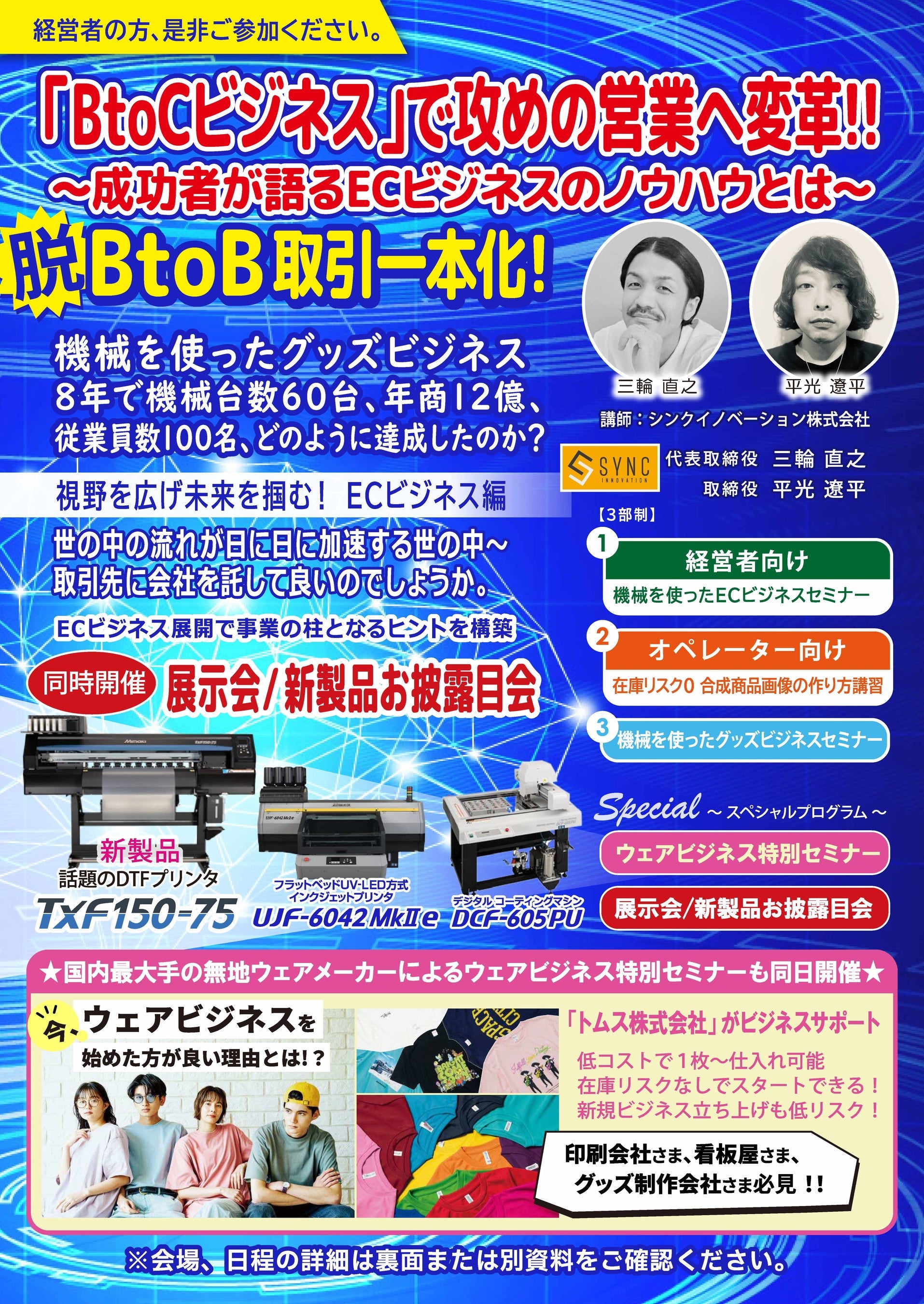株式会社ミマキエンジニアリング主催のイベント「ECビジネスセミナー&展示会/新製品お披露目会」in 大阪 にて、ECやグッズビジネスに関する特別セミナーを実施いたします!
