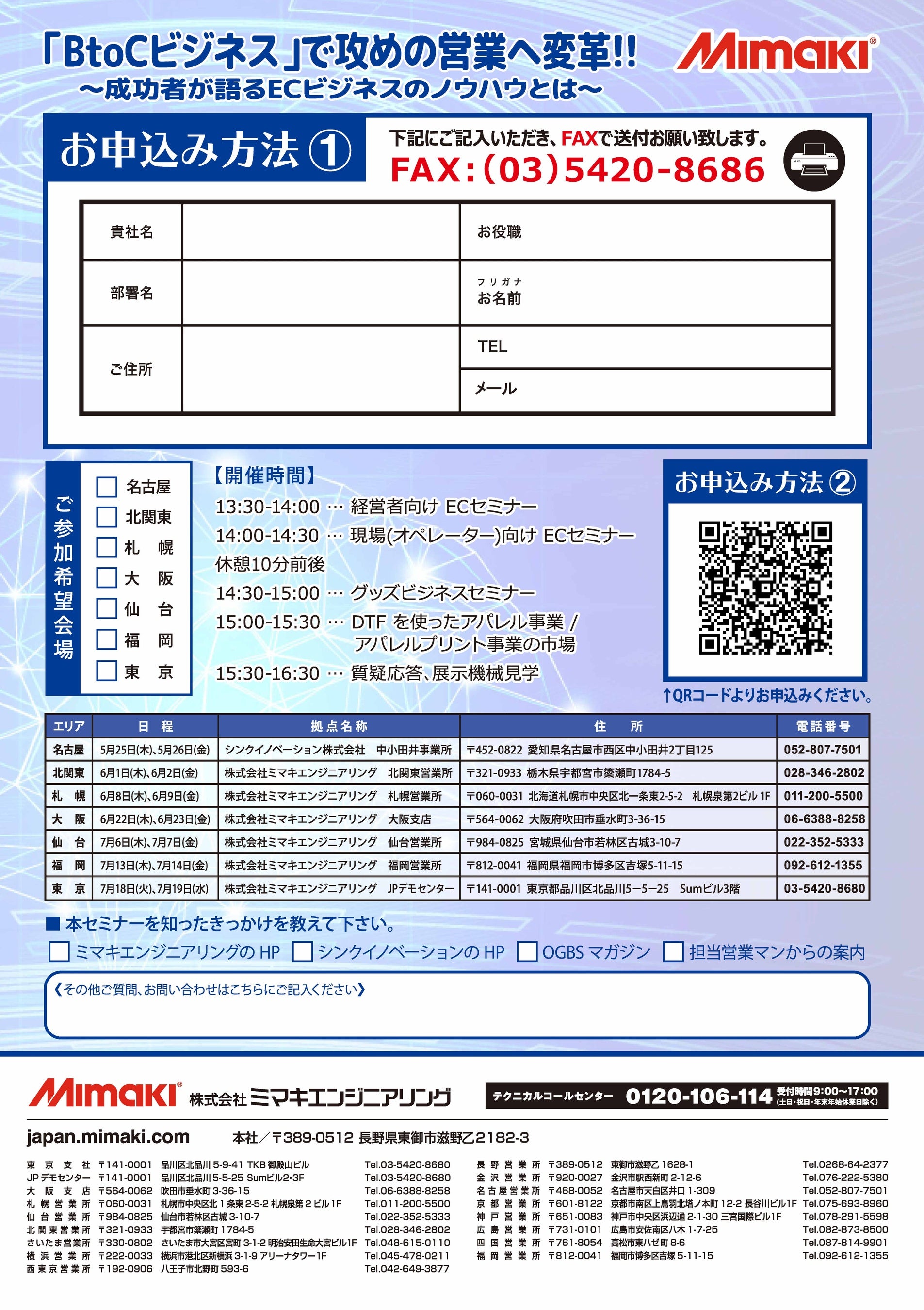 3.PDF「②ECセミナーのご案内」2ページ目のお申し込みフォームにご記入のうえ、FAXをご送付