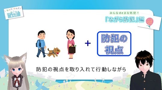 「ながら防犯」の方法や実践時の注意点について、オリジナルアバターが掛け合い形式で説明します。