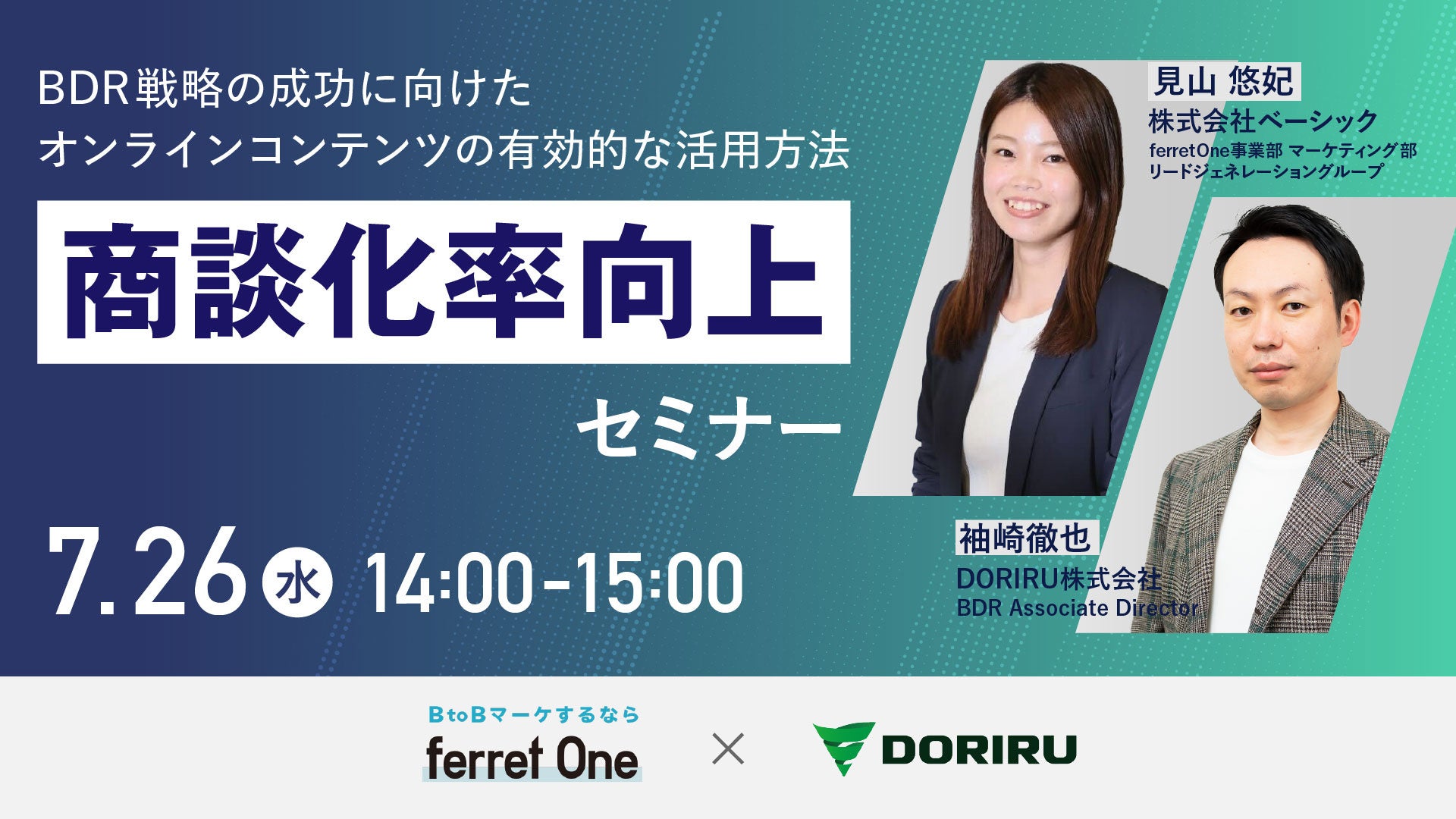 本ウェビナーでは、限られたリソースの中でいかに最小効率・成果最大を行えるかBtoBマーケティングのスペシャリスト、ベーシック社の見山氏と共にDORIRU社においてBDR Associate Directorを務める袖崎が、BDRとコンテンツマーケティングの融合を解説いたします。