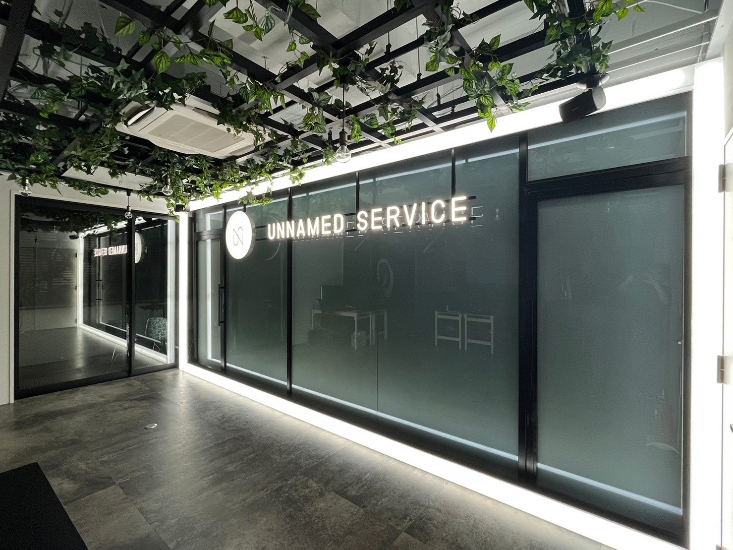 また、今年iF DESIGN AWARD2023(ドイツ)などの海外のデザインアワードを受賞を果たした株式会社nottuoには、創業当初からロゴデザインを始めとする全体のブランディングデザインを担当していただいています。今回の新オフィスでは、ネオンサインを含む様々な場面でUNNAMEDSERVICEを象徴するサインとして登場しています。