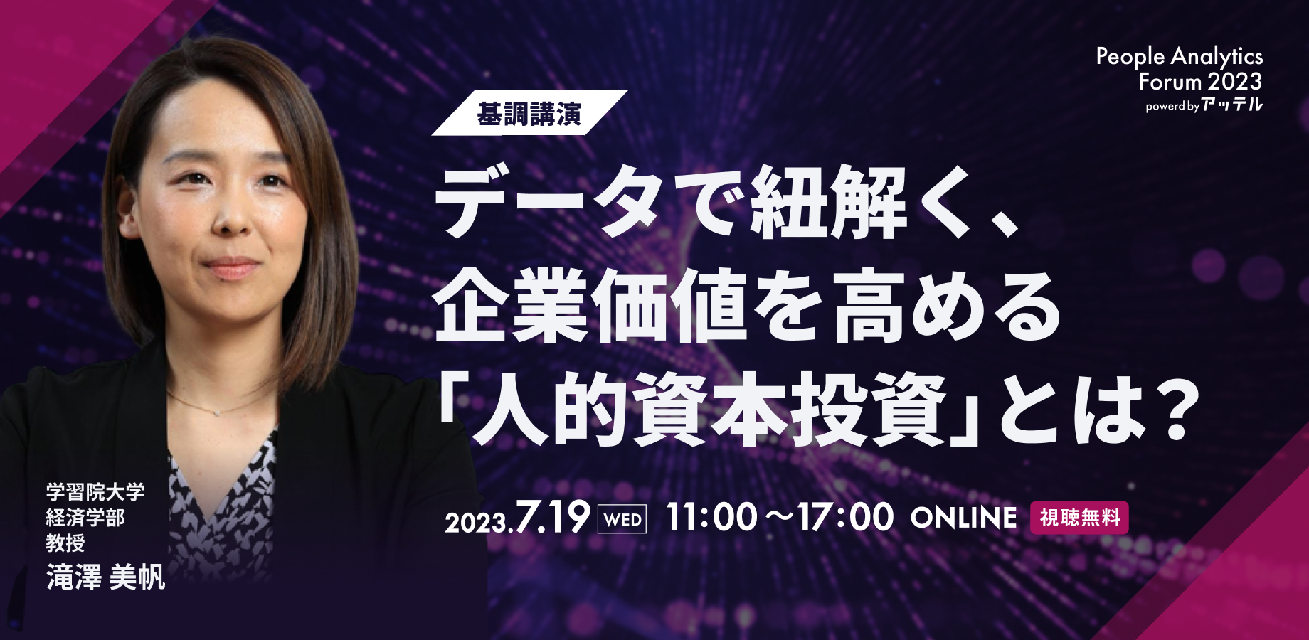 そこで今回は学習院大学経済学部 教授 滝澤氏をお迎えし、実際の分析データに基づいた、「企業価値と人的資本経営の関係性」について解説していただきます。「リスキリング」や「人的投資」が「企業生産性」に与える影響など、ビックデータ分析から見えてきたポイントを事例も交えてお伝えします。