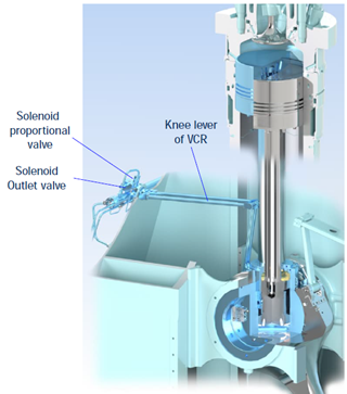 VCR機構はエンジン燃焼室内空気の圧縮比率を、エンジン出力やLNG燃料の性状に応じて最適圧縮比に調整することによりLNGガスモード運航では約3%、ディーゼルモード運航では約6%の燃費を改善することができます。