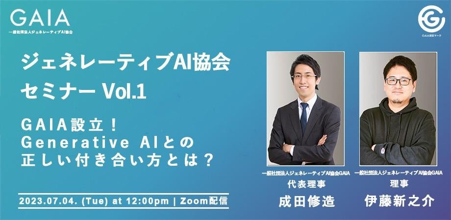 7月4日(火)12:00〜 ジェネレーティブAI協会GAIAが設立後初のオンラインセミナーを開催