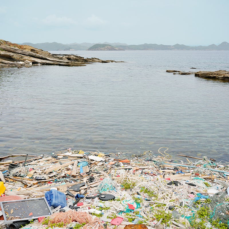 ※長崎県対馬市の海岸に流れ着く海洋プラスチックごみ