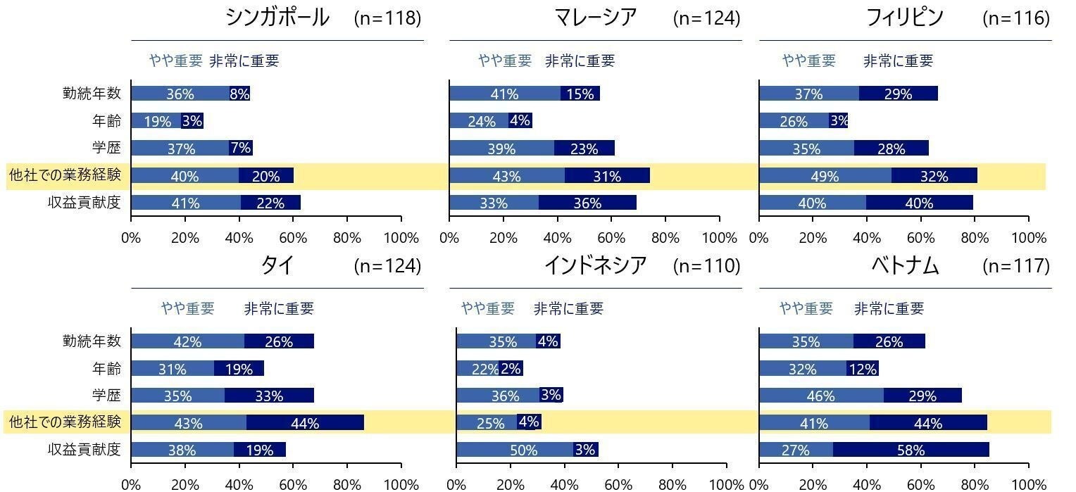 ・転職によるキャリアアップが前提として考えられているため、インドネシア以外の国では「他社の業務経験」について重視する傾向が強い。