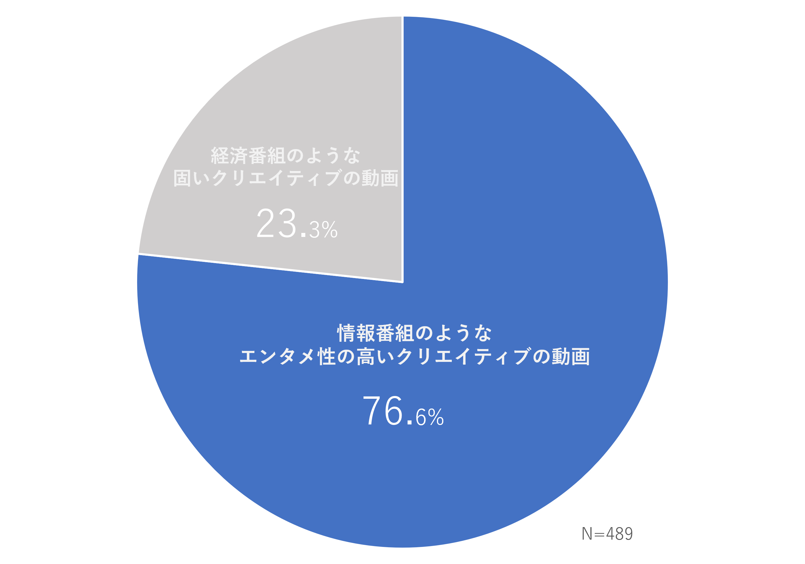 動画で発信される社内広報で、「経済番組のような固いクリエイティブ」「情報番組のようなエンタメ性の高いクリエイティブ」どちらが、社内広報への好意醸成がなされるかという質問では、「エンタメ性」が求められているという結果となった。