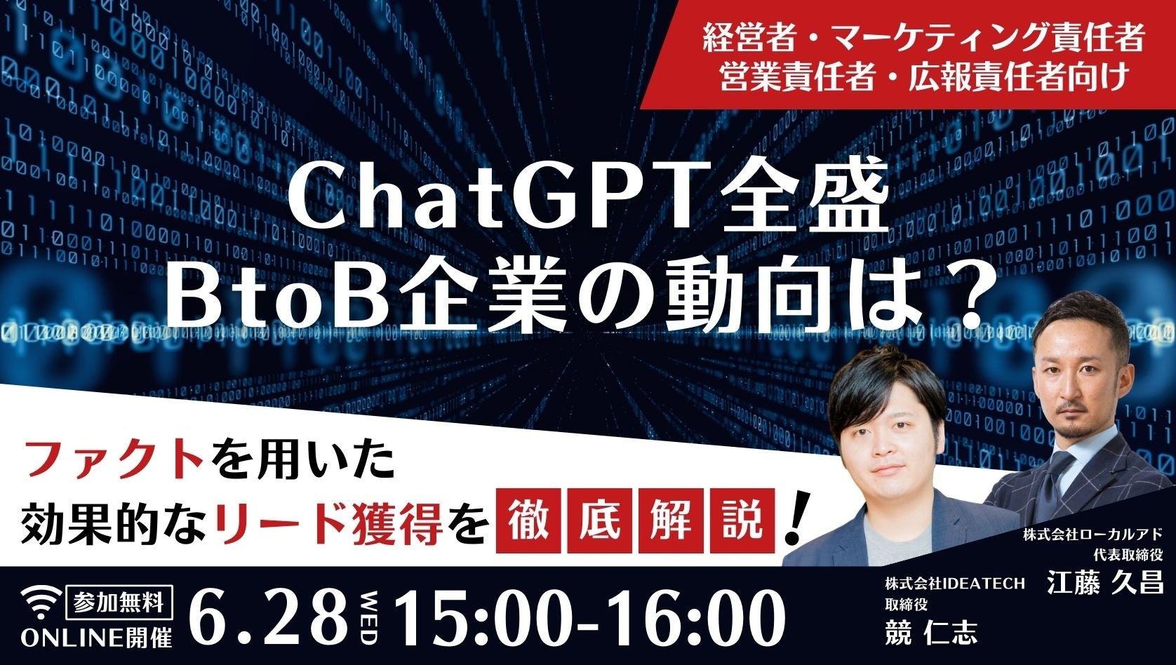 ChatGPT全盛、BtoB企業の動向は?ファクトを用いた効果的なリード獲得を徹底解説|https://ideatech.jp/seminar/230628/?utm_source=pr06222