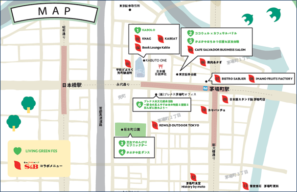 昨年に続き、今回で2度目の開催となる「LIVING GREEN FES」は、日本橋兜町、日本橋茅場町の商店会や企業と連動し、誰でも参加できる様々な魅力的な体験型コンテンツを実施します。