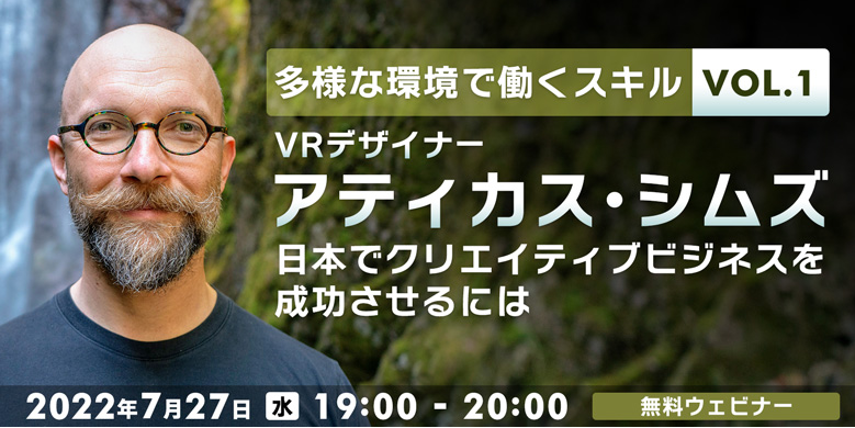 - 多様な環境で働くスキルVOL.1 VRデザイナー・アティカス・シムズ ~日本でクリエイティブビジネスを成功させるには~
