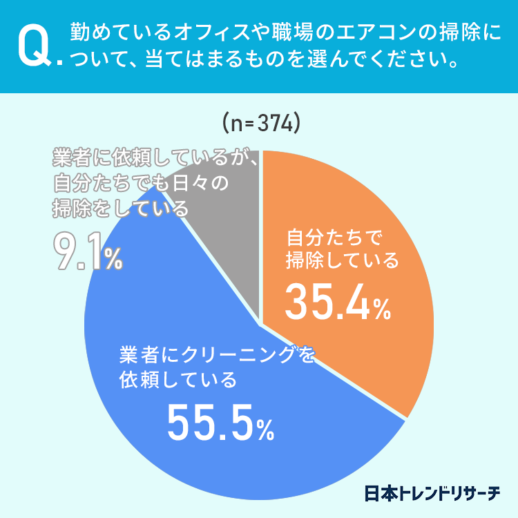 続いて、勤めているオフィスや職場のエアコンの掃除について、当てはまるものを選んでもらいました。